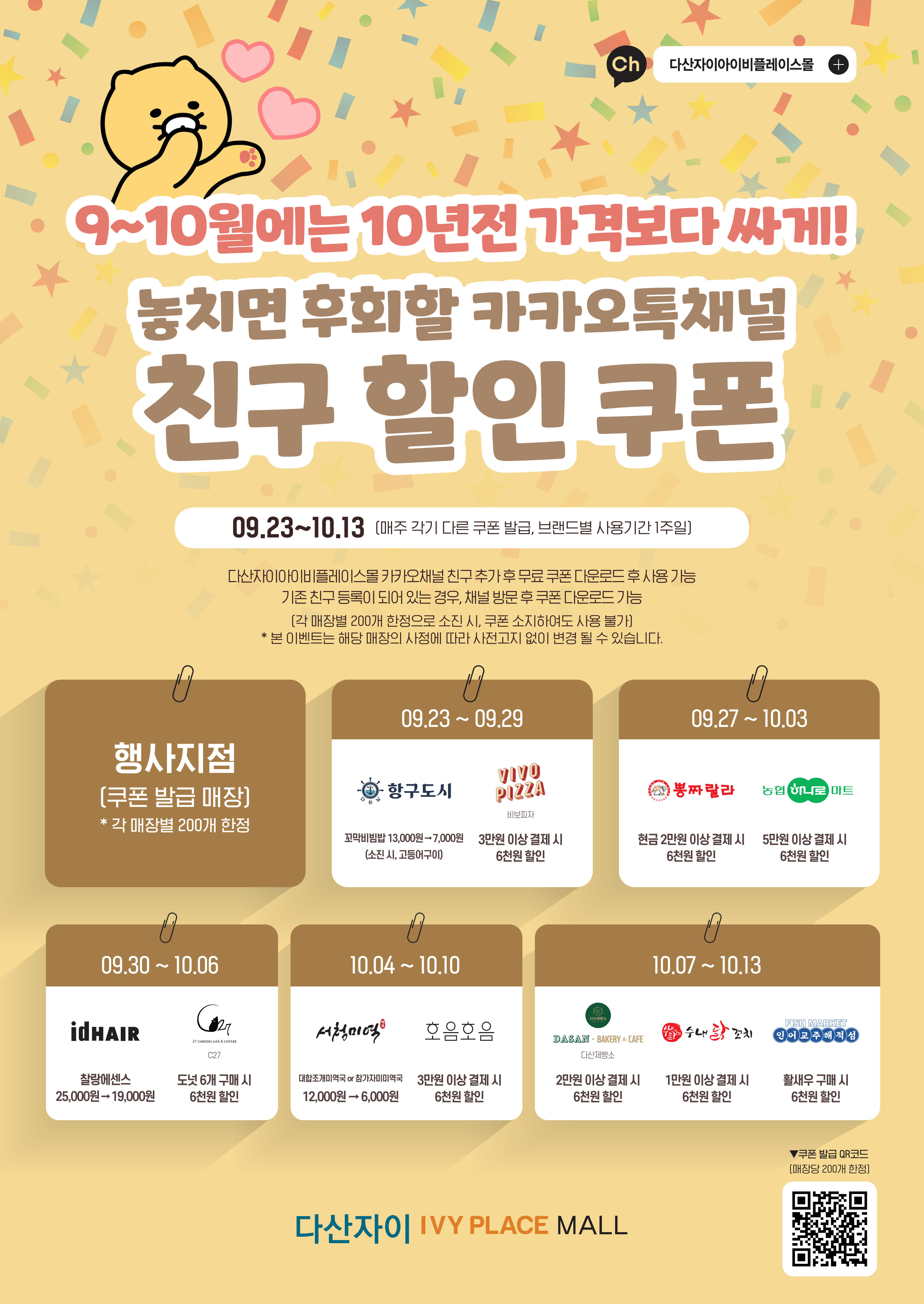 제목 카카오채널 할인쿠폰 (9/23~10/13)